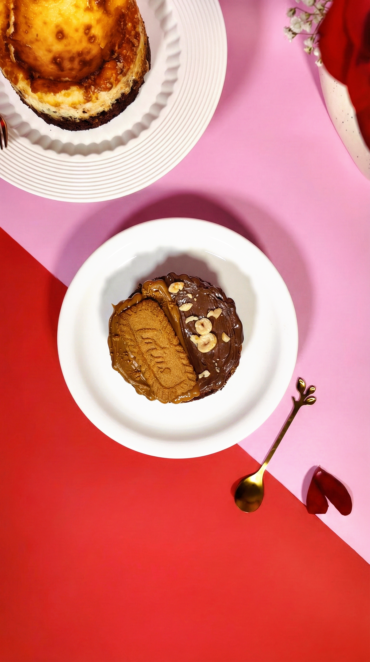 Dense chocolate. Creamy cheesecake.